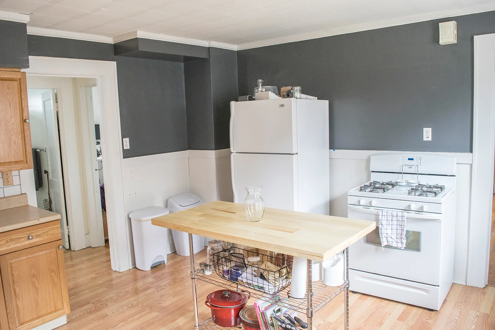The other downside was that there wasn’t a whole lot of counter space. It was such a huge room, so I knew I wanted to buy or DIY an island of some sort.